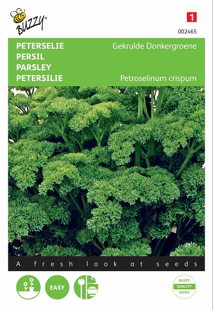 Le Persil Frisé vert foncé forme une plante basse avec une feuille fine et frisée vert foncé. Il convient tant à la culture en serre (en hiver) qu’à la culture en pleine terre. Le goût de la feuille est fortement aromatique et elle va avec toutes sortes de plats.
